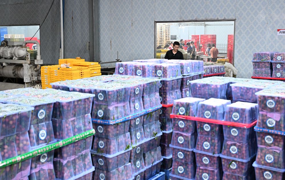 这是6月4日在广东茂名高州市广东铭景农业发展有限公司车间内拍摄的打包好的出口荔枝。新华社记者 邓华 摄