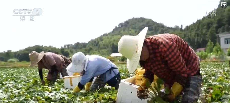 箬坑村种植的“大青菱”从7月初开采,采摘期持续到11月中旬,亩产约2000斤,高峰期每天可采摘1.5万斤,预计全年总产量超200万斤。