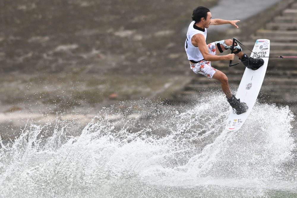 8月10日,日本选手手塚翔太在2025年成都世运会男子尾波滑水自由式比赛中。新华社记者 陈振海 摄