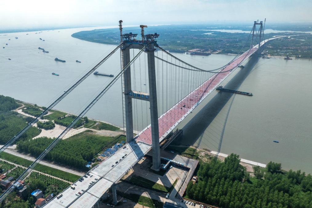 7月26日拍摄的合龙后的双柳长江大桥(无人机照片)。新华社记者 肖艺九 摄