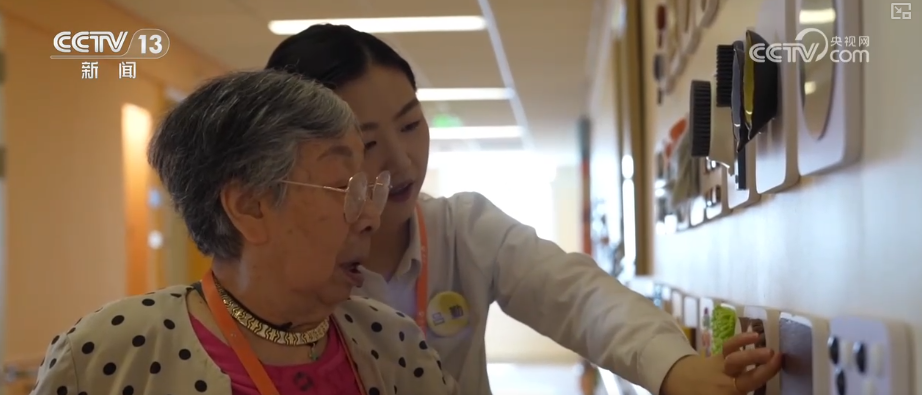 吕勤介绍,这面墙是多感官刺激抚触类训练墙。通过一定频次,规律去做一些感统训练的模式,减缓老人感官退化的速度。