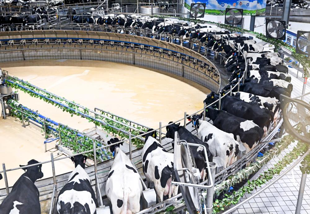 这是2025年7月28日拍摄的呼和浩特市伊利敕勒川生态智慧牧场挤奶车间。新华社记者 李志鹏 摄