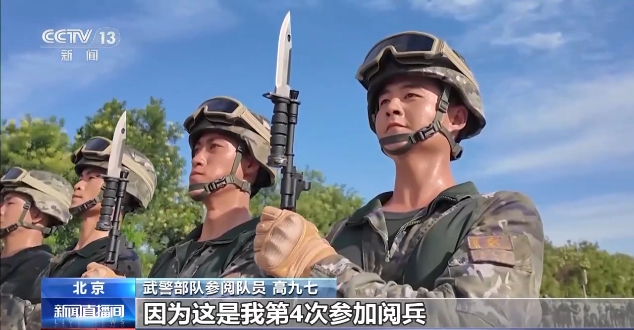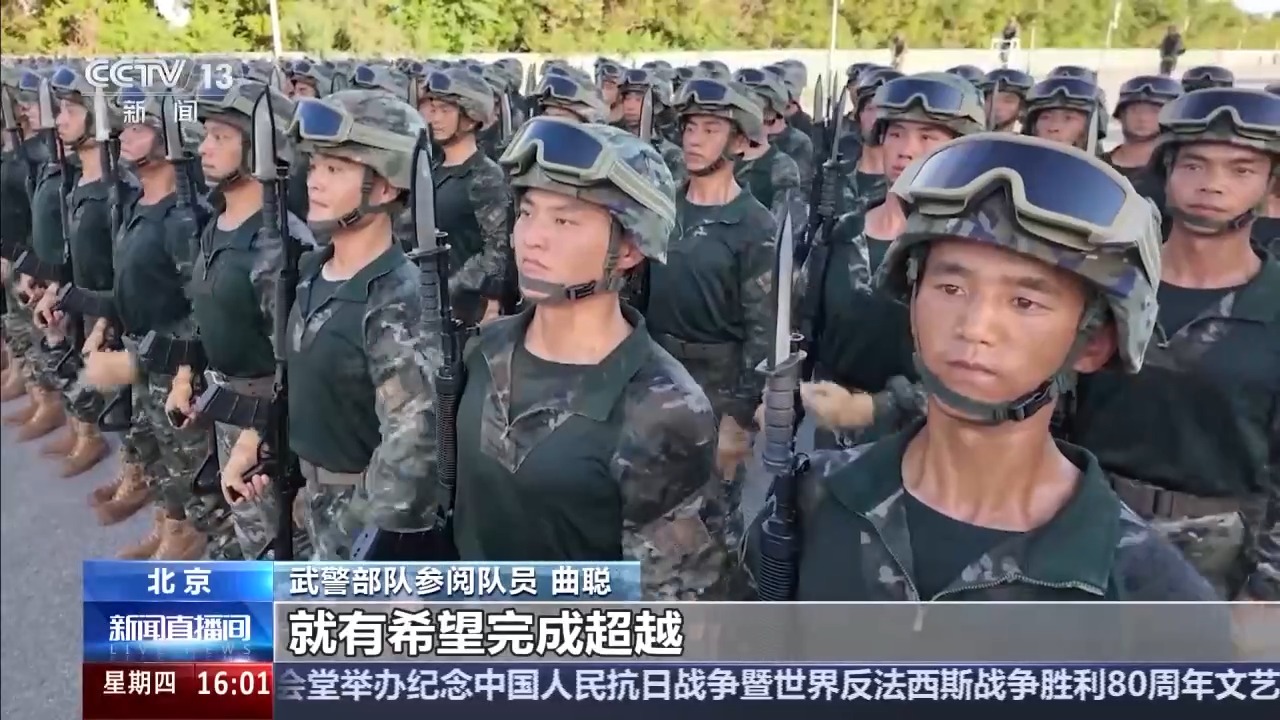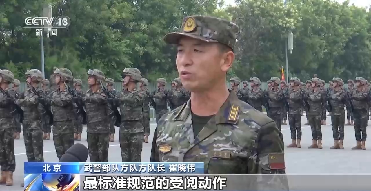 武警部队方队方队长 崔晓伟:目前我们已经进入最后的冲刺阶段,在纪念抗战胜利80周年纪念日当天,以最昂扬的精神状态、最标准规范的受阅动作,光荣地接受党和人民检阅,接受习主席检阅。