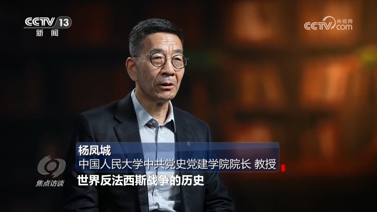 中国人民大学中共党史党建学院院长、教授杨凤城:“历史是不能忘记的,忘记历史就意味着背叛,尤其是第二次世界大战的历史,世界反法西斯战争的历史、中国人民抗日战争的历史、那是血与火、生命鲜血凝成的历史。历史是教科书,历史是清醒剂,它首先是对我们的警醒,战争的残酷,和平的可贵。”