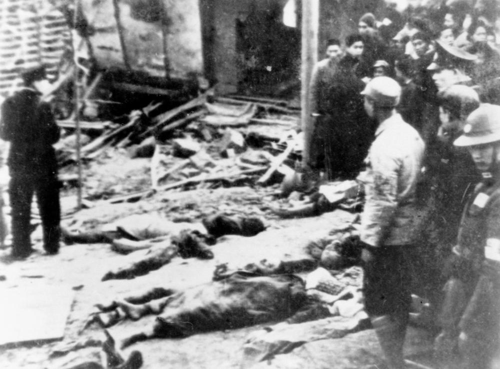 1939年1月15日,日军飞机轰炸重庆市朝天门码头后的惨状。新华社发