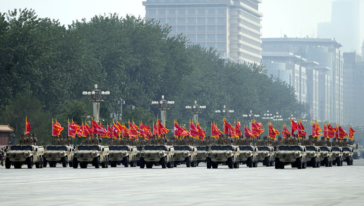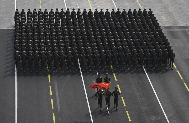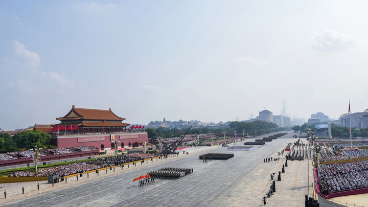 ↑9月3日,纪念中国人民抗日战争暨世界反法西斯战争胜利80周年大会在北京隆重举行。这是徒步方队接受检阅。