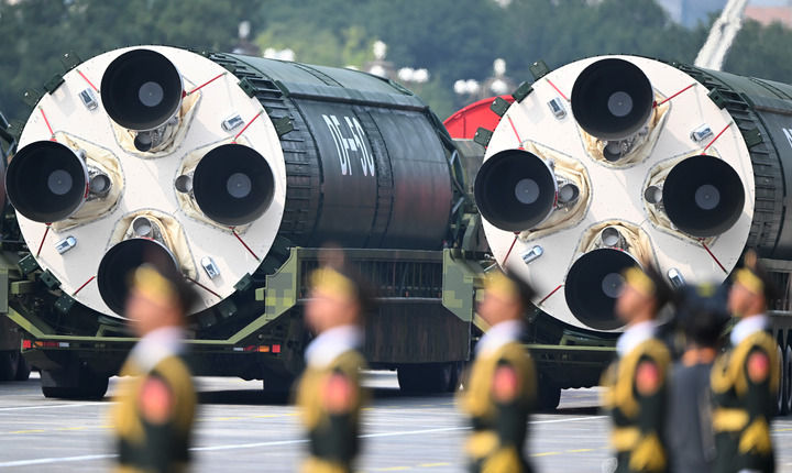 ↑9月3日,纪念中国人民抗日战争暨世界反法西斯战争胜利80周年大会在北京隆重举行。这是核导弹第二方队接受检阅。