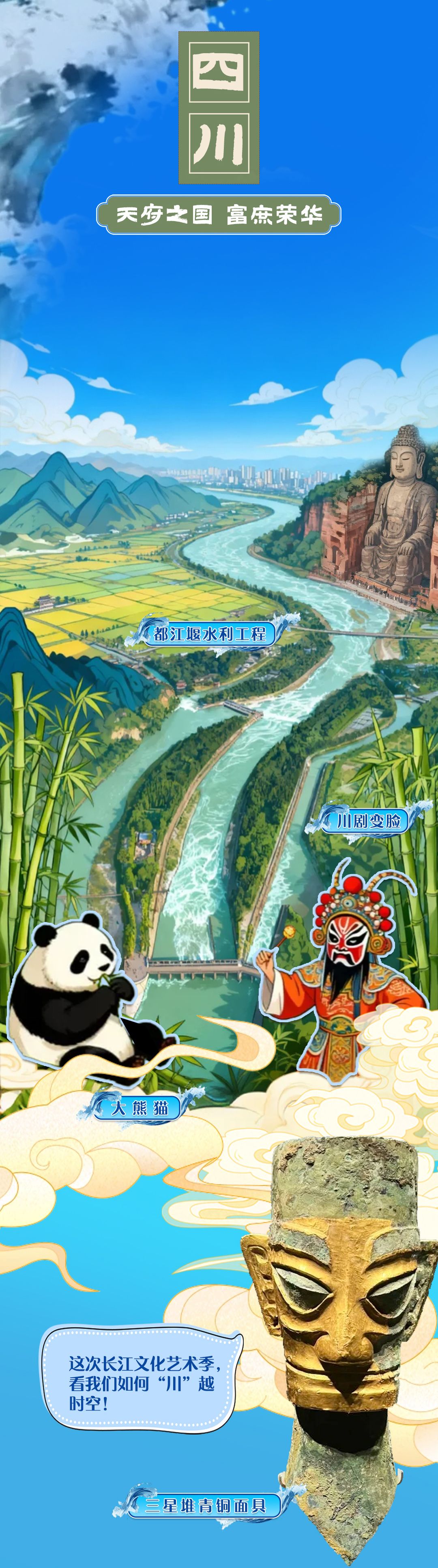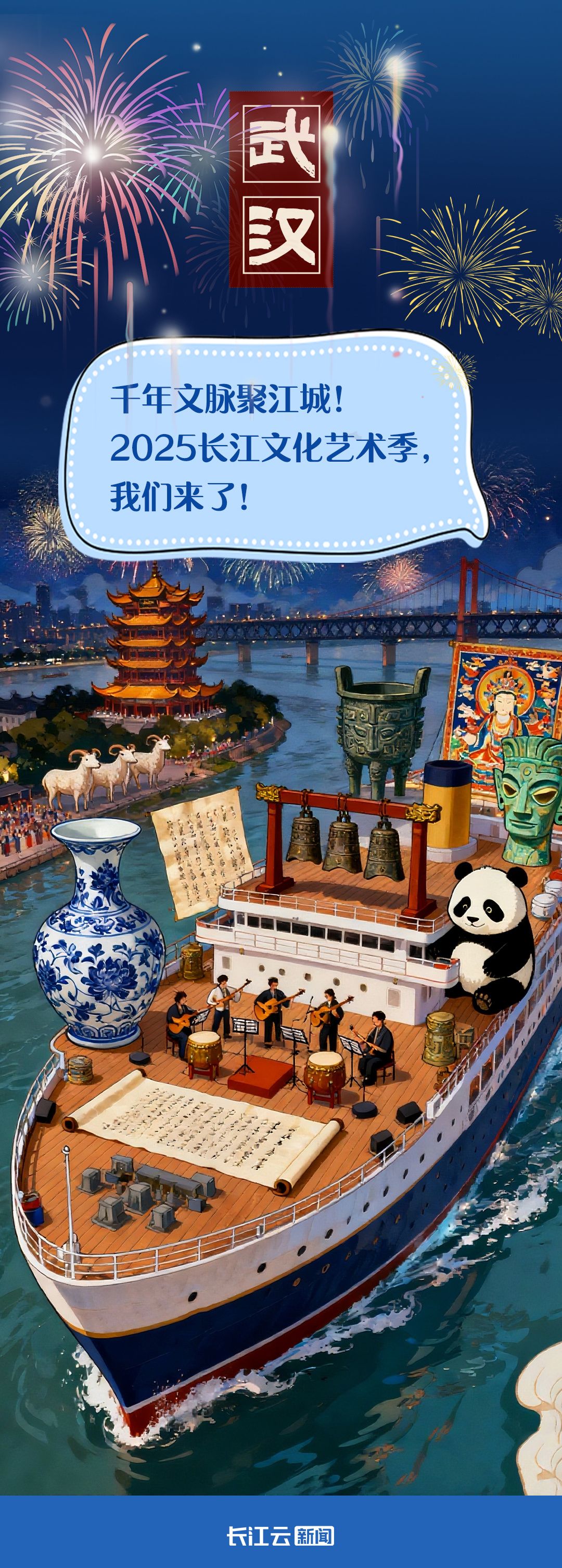 溯流而上,听曾侯乙编钟奏响千年清音,看三星堆神树闪耀古蜀智慧;与熊猫漫步蜀地竹林……今天(9月12日),2025长江文化艺术季即将在武汉盛大启幕,让我们跟着沿江各地的国宝一起共赴这场跨越山河的艺术盛宴!