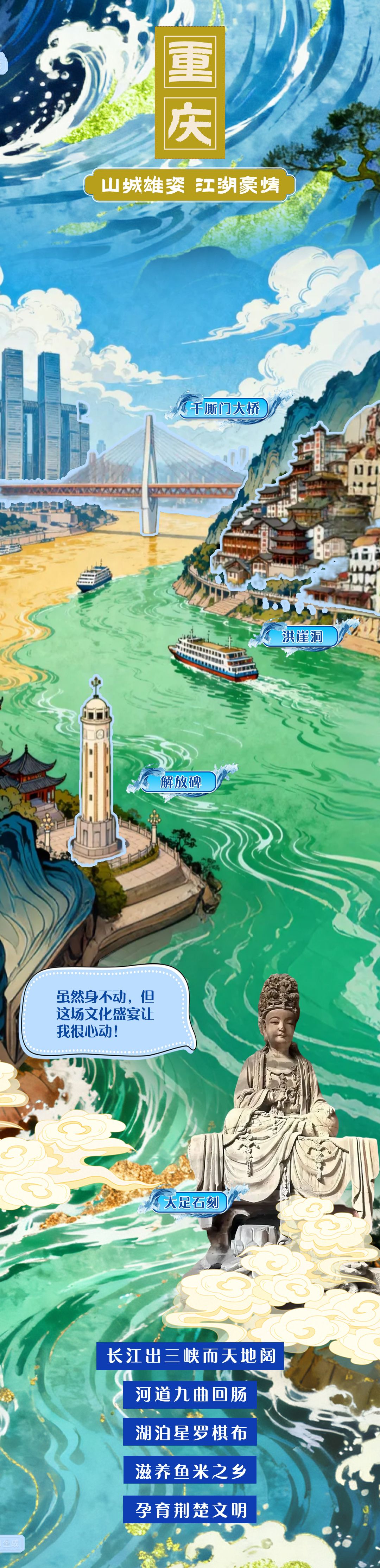 6300余公里奔腾,5400多米跌宕。长江,是一条流淌着诗意的文明长河,每一朵浪花都是文化的结晶。