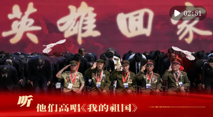 在沈阳抗美援朝烈士陵园,几位志愿军老兵唱起了《我的祖国》。他们用歌声迎接战友回家。