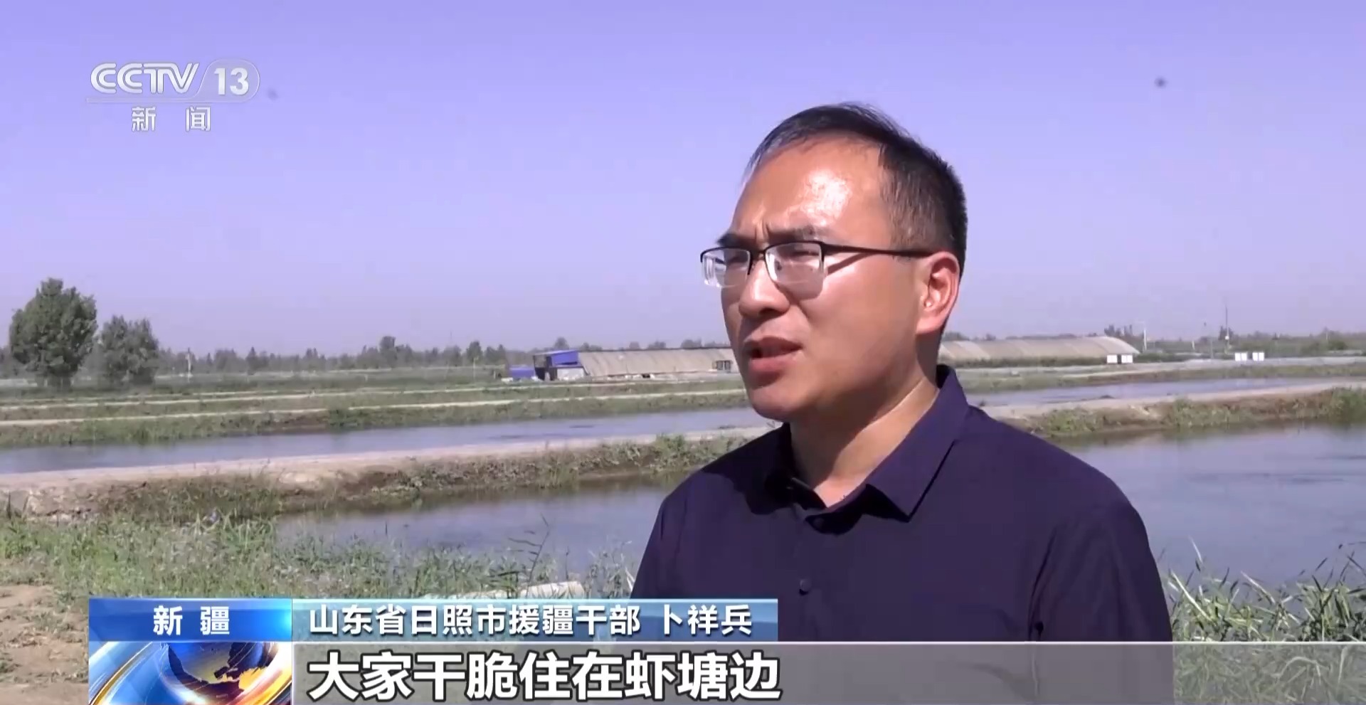 山东省日照市援疆干部 卜祥兵:我们也揪心,当即从日照调来了专业养殖团队,大家干脆住在虾塘边。新疆的水盐碱性高,龙虾不蜕壳就活不了。为了调水质,有一天我们光测试就做上百次,数据密密麻麻写了两大本。