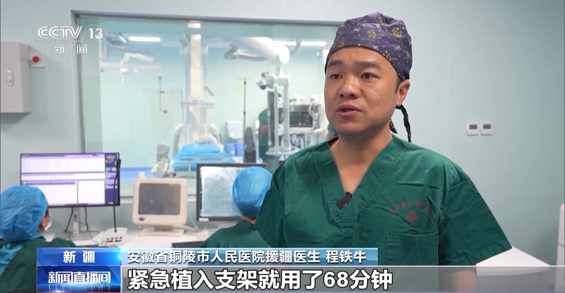 安徽省铜陵市人民医院援疆医生 程铁牛:紧急植入支架就用了68分钟。心内科急诊有个“黄金90分钟”,现在我们终于把这条生死线前移了一千里!