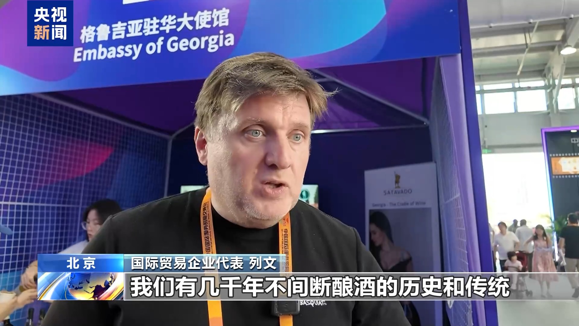 国际贸易企业代表 列文:我们有几千年不间断酿酒的历史和传统,还有自己独特的葡萄种。我们也有自己酿酒的工艺,所以这么好的产品,我们一定要带到中国,给中国消费者和客户朋友们介绍,所以连续7年我们参加服贸会。