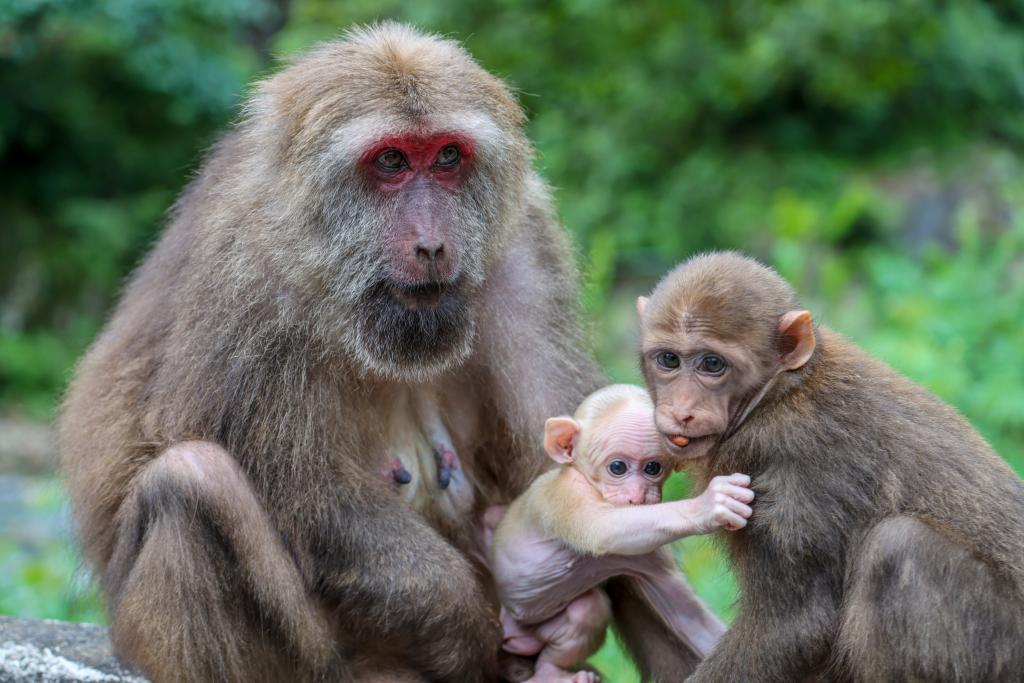 7月22日,藏酋猴在武夷山国家公园腹地桐木村嬉戏。新华社发(邱汝泉摄)