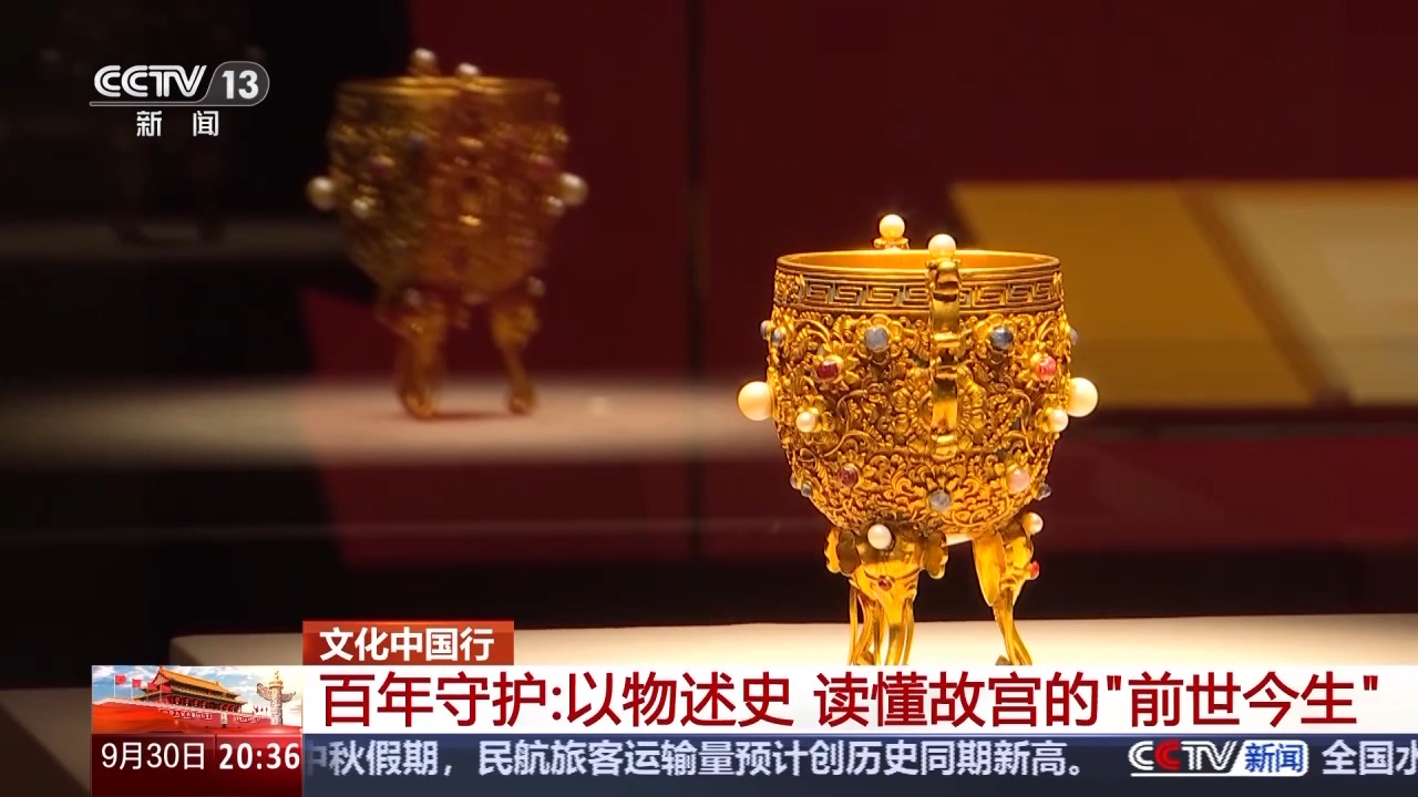 两千多年前的青玉兽面纹璧、春秋时期的莲鹤方壶与清代的金瓯永固杯,实现了一场跨越千年的“凝视”。温润的玉璧、展翅欲飞的仙鹤,共同承载着中华民族开拓进取的精神;熠熠生辉的金杯,寄托着国家永固、人民安康的美好祈愿。这无声的对话,正是对中华文明五千多年从未中断、连绵不绝的最好注解。
