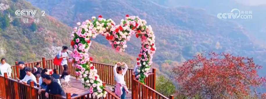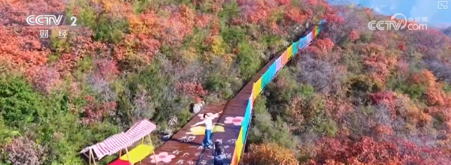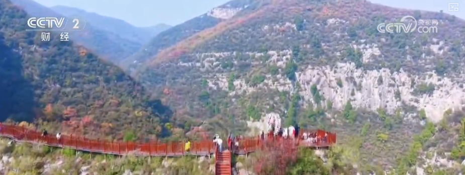 这里新落成的五彩步道全长1300米,沿山脊蜿蜒铺展,如一条绚烂彩带镶嵌于山间,每百米便有一处景致,步移景异。游客既能赏红叶烂漫、览太行雄姿,亦可于登高望远处邂逅一场秋日视觉盛宴。