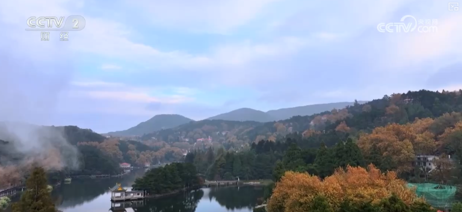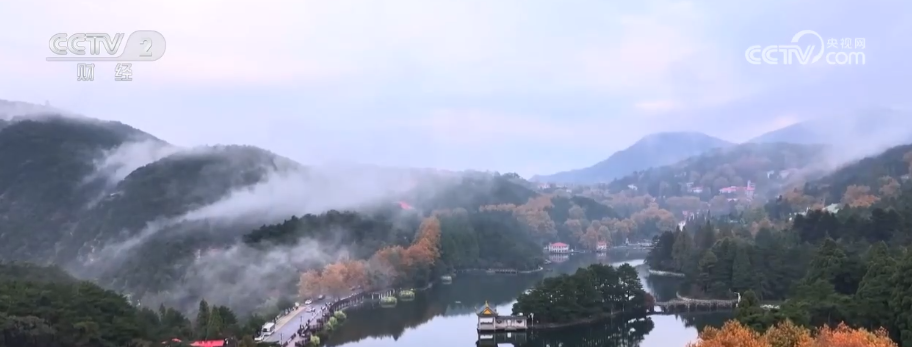 11月的庐山,秋色渐浓,风景如画。高空俯瞰,如琴湖畔,梧桐叶黄、鸡爪槭红。山雾随风而起,半遮半掩,色彩斑斓的秋天景色若隐若现,倒映在湖中如梦如幻。众多游客纷至沓来,登山赏景、打卡留念。