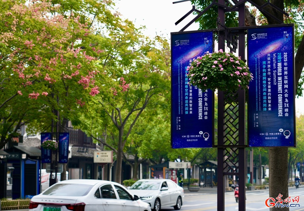 2025年11月5日,浙江乌镇,随处可见的乌镇峰会元素。
