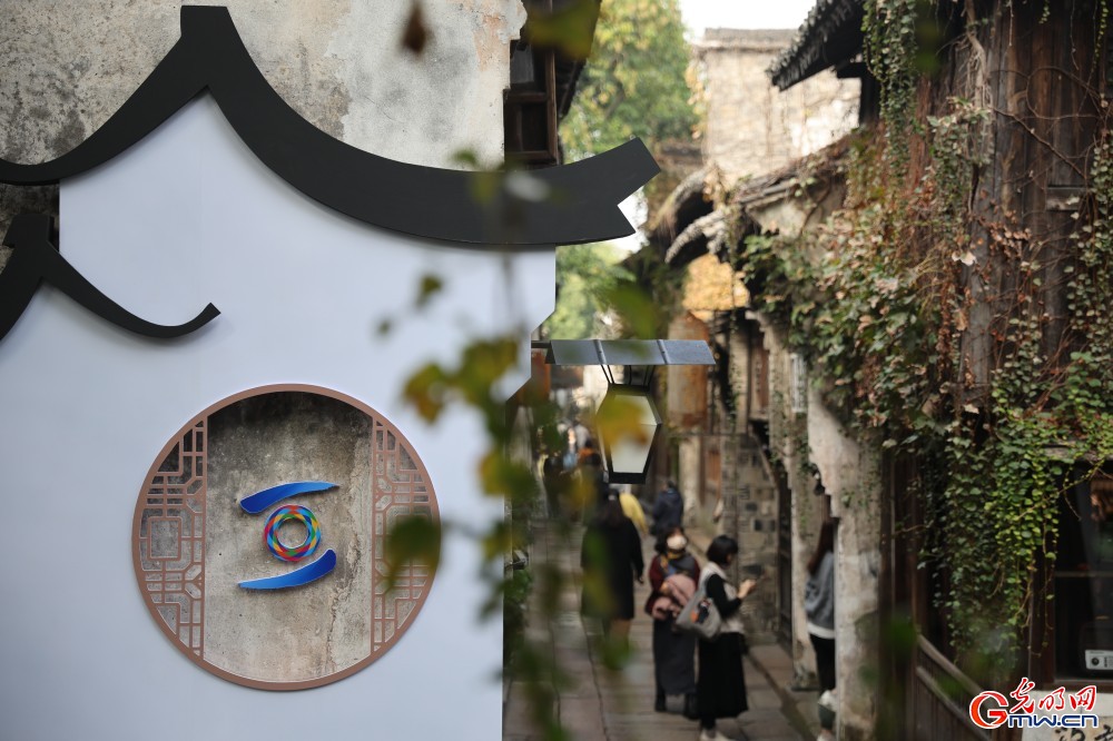 2025年11月5日,浙江乌镇,乌镇西栅景区内的乌镇峰会元素。