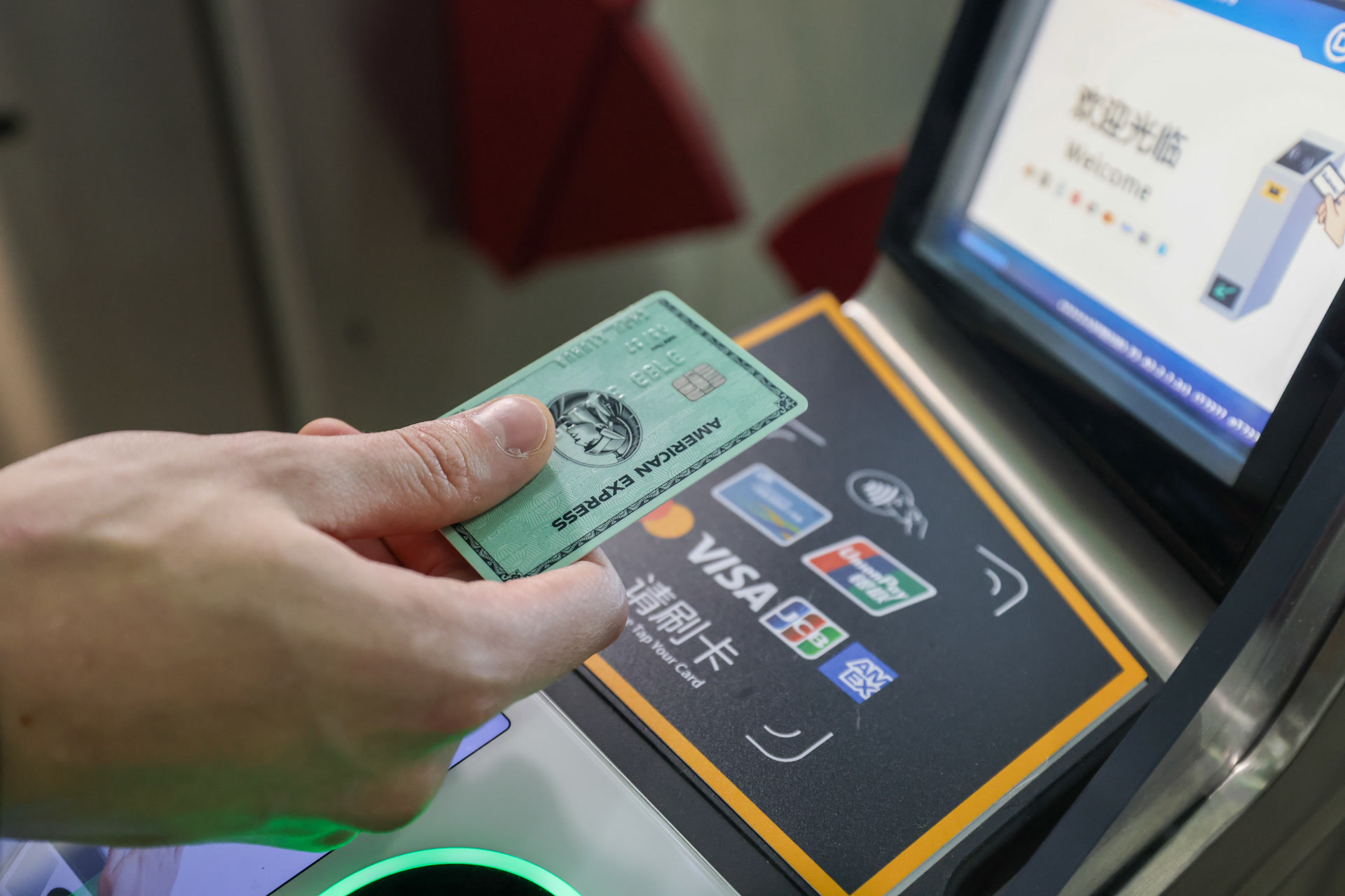 6月15日起,北京城市轨道新增支持境外发行的JCB卡和境内外发行的美国运通卡非接触式拍卡过闸及购补票功能。北京城市轨道成为全球首个全网覆盖中国银联、万事达、维萨、JCB、美国运通五大卡组织支付服务的城市轨道交通系统。 本报记者 邓伟摄(孙宏阳文)