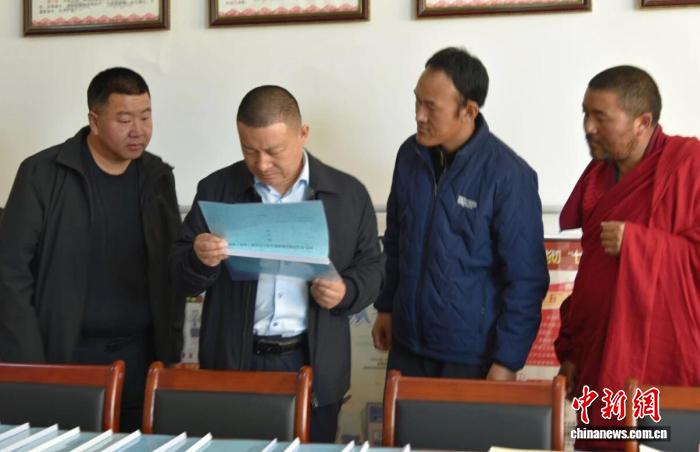 图为甘南州委常委、统战部部长王力(左二)调研寺庙管理工作。甘南州委统战部供图