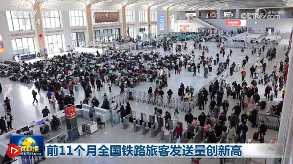 央视网消息(新闻联播):记者从国铁集团获悉,今年1至11月,全国铁路发送旅客42.8亿人次,同比增长6.6%,创历史同期新高。