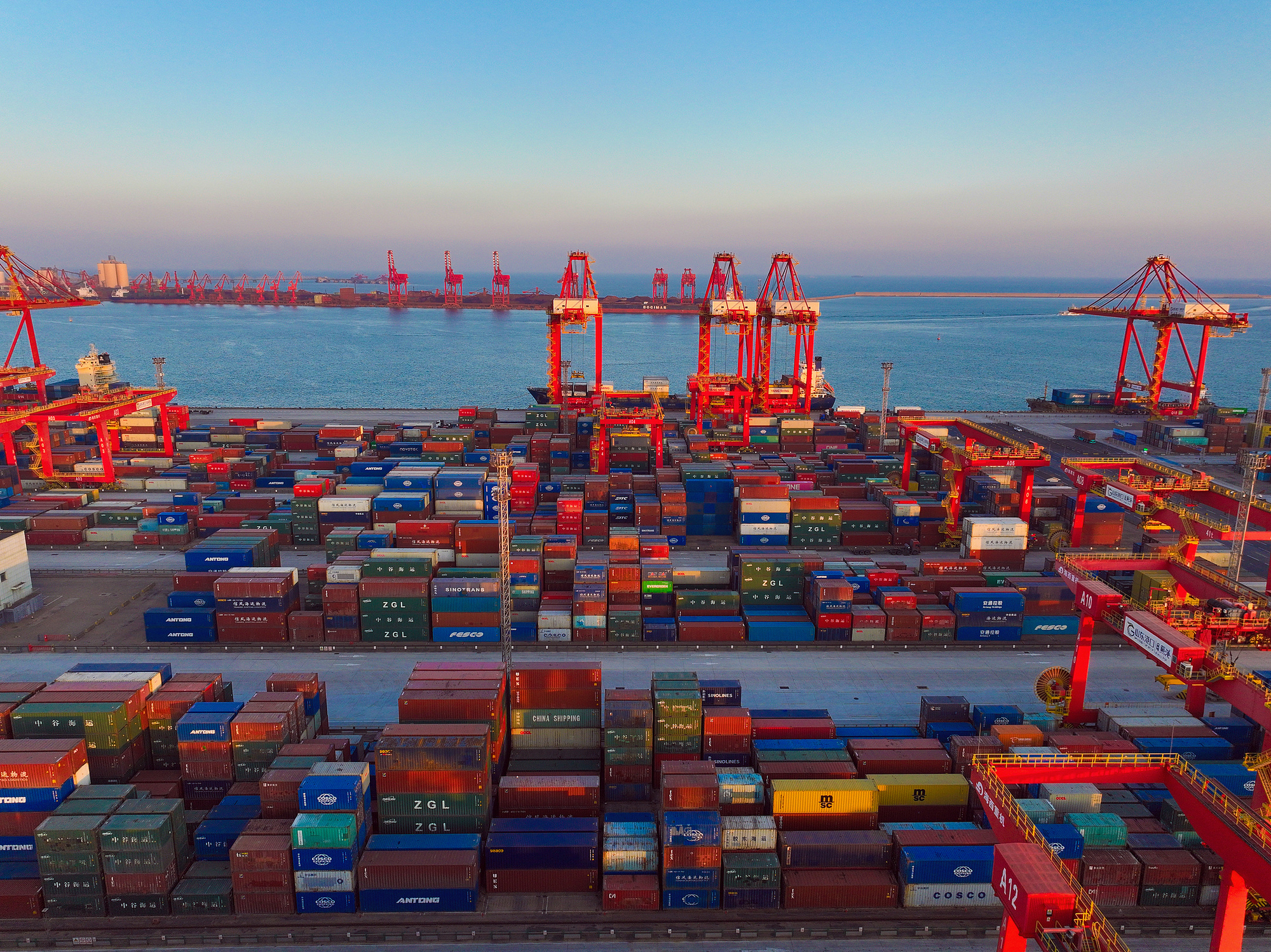 山东港口日照港集装箱码头一派繁忙景象