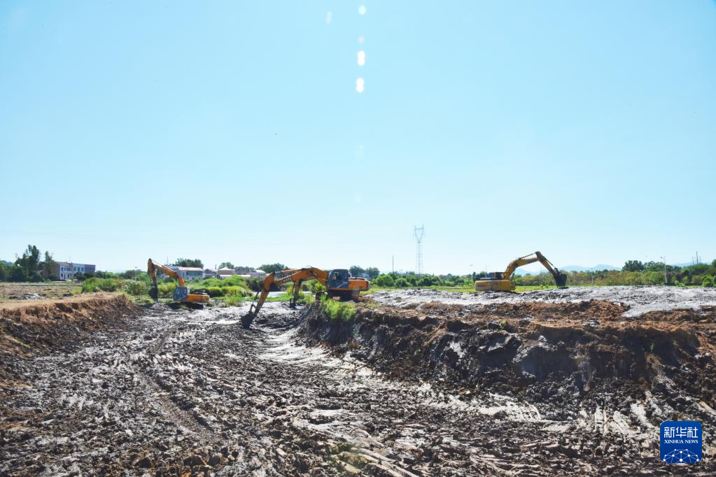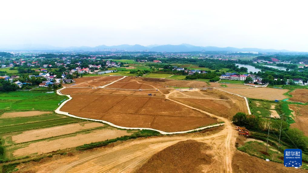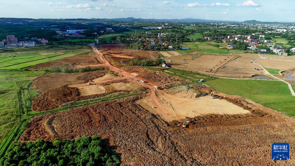 这是2022年8月31日拍摄的浏阳市永安镇丰裕村严格管控区地块覆土作业现场(无人机照片)。新华社发(邹礼卿 摄)