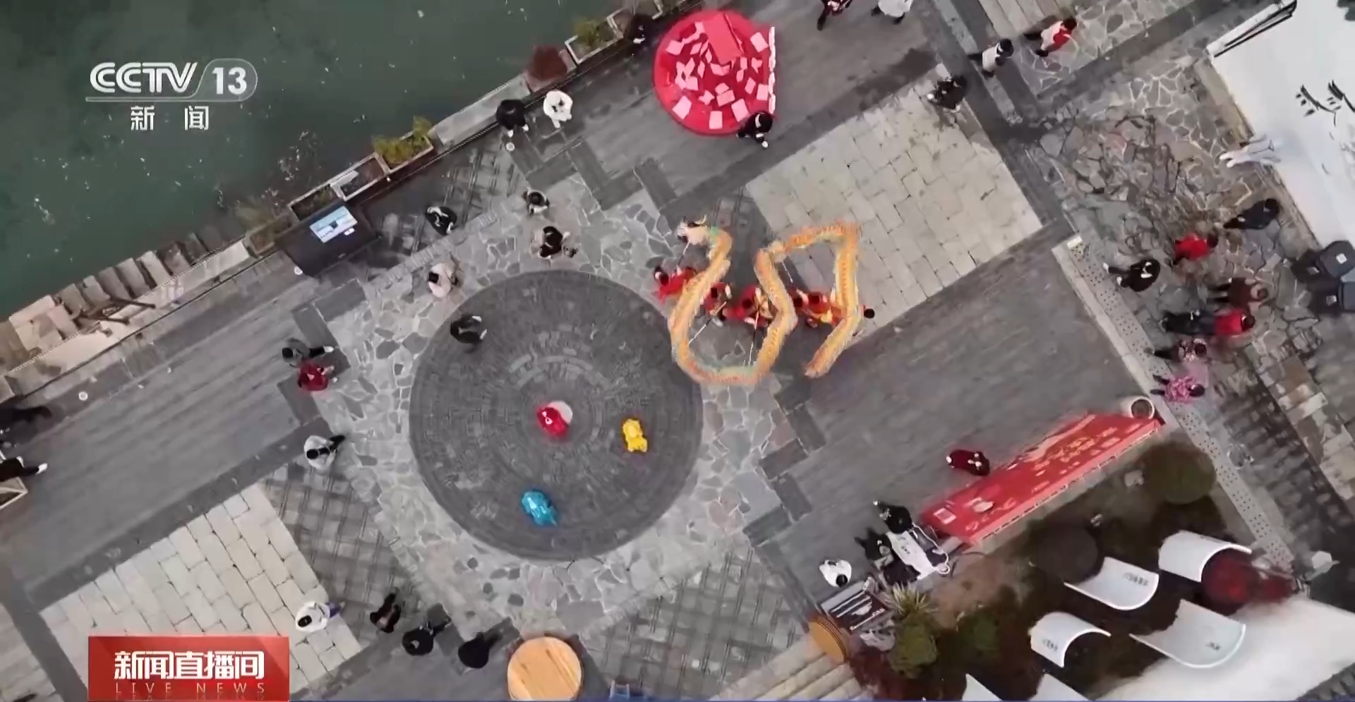 总台记者 李若冰:元旦启新年,写福字、做拓印,还有舞狮机器狗,这里正洋溢着浓浓的节日氛围。