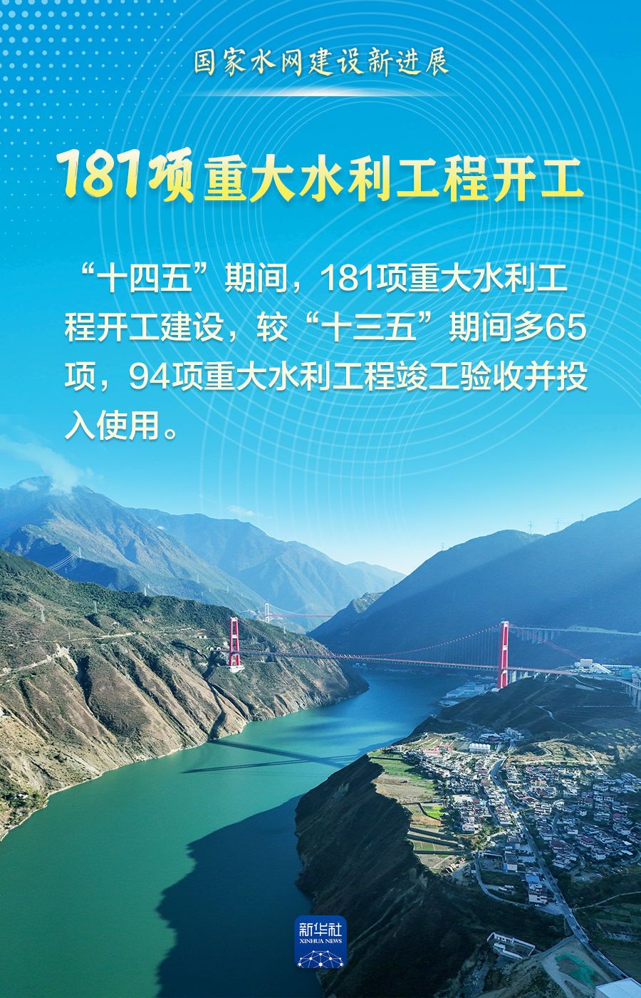 江河安澜,治水兴邦。“十四五”期间,全国完成水利建设投资5.68万亿元、181项重大水利工程开工建设、国家水网覆盖范围占国土面积的比例达80.3%……一项项丰硕成果,既勾勒出清水绿岸、鱼翔浅底的生态画卷,更织密守护万家灯火的水安全保障网,为经济社会高质量发展注入强劲动能。