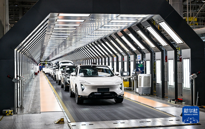 2025年9月18日在位于重庆市渝北区的长安汽车数智工厂总装车间拍摄的即将下线的新能源汽车。新华社记者 王全超 摄