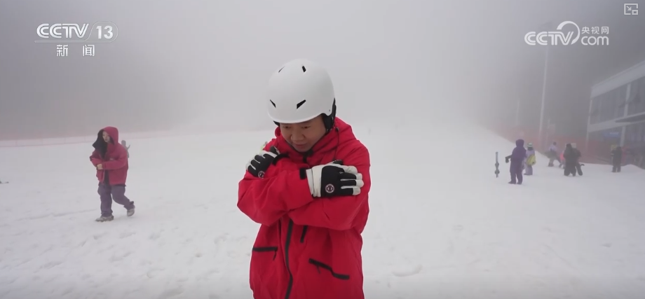 在这也和大家分享几个知识点,教练表示,学习滑雪的第一步就是学会安全摔倒和站起。比如向后摔倒时,双手迅速交叉抱在胸前,头埋下去,之后先用臀部做缓冲,再把力量顺势转移到背部,就能安全摔倒不受伤。注意手不能直接撑地,也要避免摔倒后脑勺。