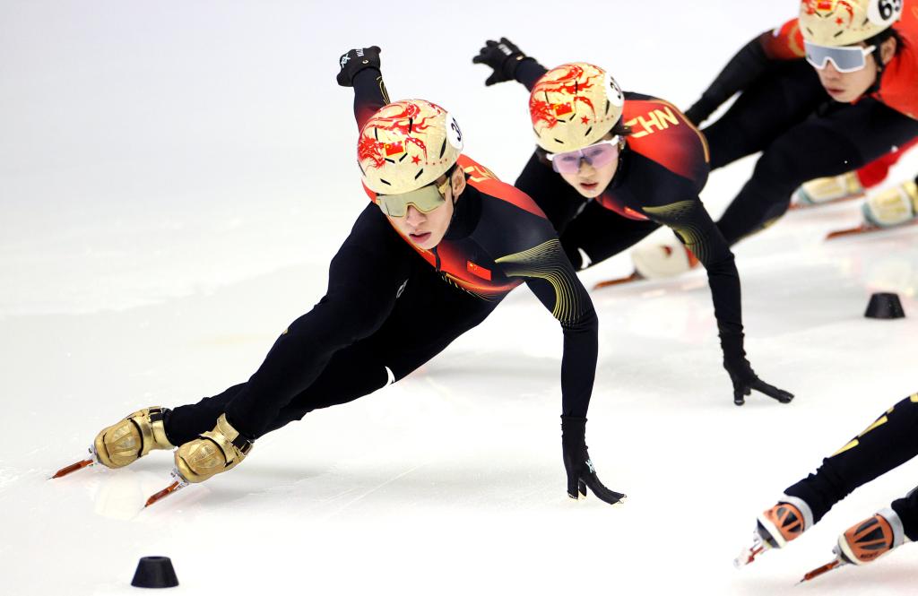 1月29日,中国短道速滑队选手在训练中。新华社记者 张晨 摄