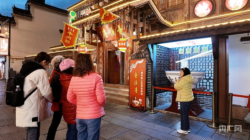 游客在常德米粉店前打卡(央广网记者黄珂岚 摄)