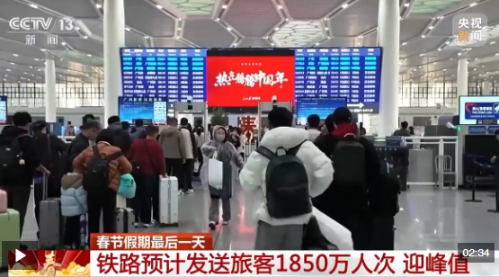 今天,全国铁路预计发送旅客1850万人次,是春节假期铁路出行最高峰值。面对返程客流高峰,广州、上海、武汉等多地火车站增派客运、安检人员及志愿者,加强夜间列车引导,实行“双班制”确保24小时有人值守。同时在候车区增设免费充电设备和24小时热水,并延长便利店营业时间。车站还协调加密夜间公交与出租车班次,并在出站口设置“夜间交通指引岗”,安排专人引导旅客快速换乘。