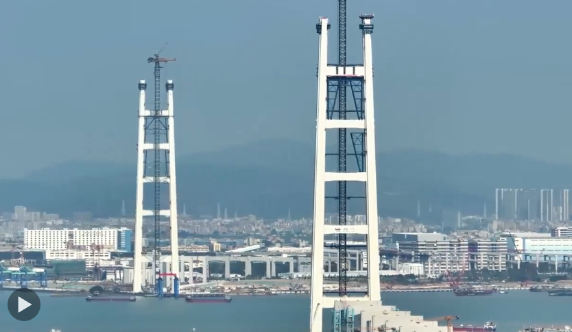 3月26日上午11时,粤港澳大湾区核心枢纽工程狮子洋通道迎来重大进展,其关键控制性工程——狮子洋大桥东、西主塔完成封顶,以342米的凌空高度,一举成为珠江口第一高桥塔、世界最高双层悬索桥主塔。