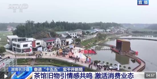 总台记者 傅蕾:我现在是在开慧镇一家茶馆的前坪,这座由闲置老供销社改建而成的文旅新地标,此刻春意浓浓、热闹非凡,长沙县消费季系列活动今天在这里启幕。我身后不远处形似电视机的大舞台上,村K比赛正在上演。作为茶馆室外联动场景的一部分,这里不定期会举行一些惠民演出,吸引市民游客观赏、拍照,形成了“台前看戏”的生动场景。