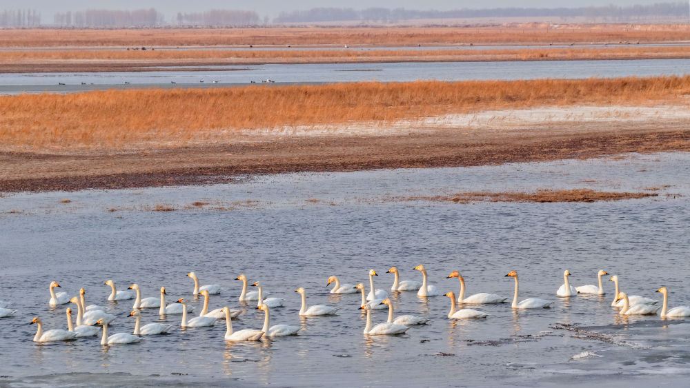 吉林西部江河众多、湿地密布,是全球候鸟迁徙的重要通道之一。每年春秋两季,全球约60%的白鹤都会在白城市镇赉县停歇觅食,场面蔚为壮观。