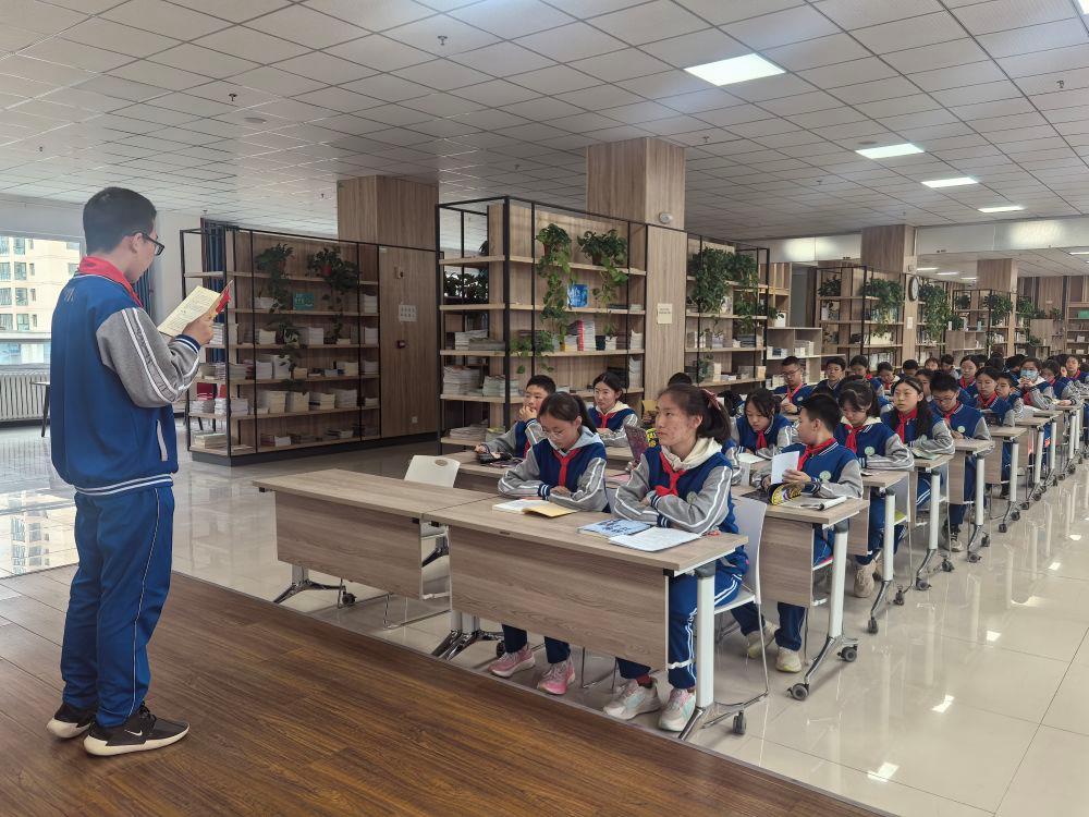 2025年4月16日,甘肃兰州,学生们在图书馆上阅读课。