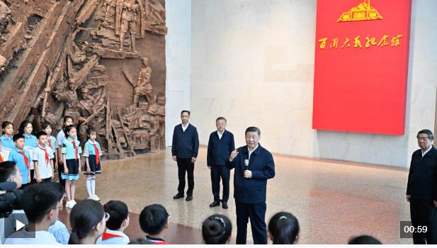 7日下午,习近平总书记来到山西省阳泉市,向百团大战烈士敬献花篮,参观百团大战纪念馆。在纪念馆大厅,习近平同青少年学生和纪念馆工作人员亲切交流。他对大家说,今天来到这里有特殊意义。七七事变是全民族抗战的开始,中国共产党是全民族抗战的中流砥柱,百团大战让全世界看到了中国共产党和中国人民抗战的意志和力量。我们坚持14年抗战,作出了巨大牺牲。前事不忘,后事之师。孩子们要争做民族的脊梁,一定要把我们国家建得强盛起来,要为全世界的和平作贡献。希望寄托在你们身上,未来是属于你们的。希望你们好好努力、奋发图强,做一个堂堂正正、光荣自豪的中国人。