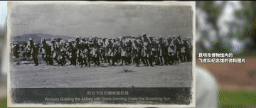 1942年日军截断滇缅公路后,美国空军开辟“驼峰航线”,为中国提供军用民用物资,为此迫切需要在短时间内修建大量的机场。为了配合飞虎队作战,中国人民在没有重型机械设备的情况下,用汗水和鲜血筑成了一条条跑道。