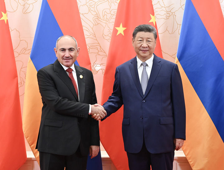 8月31日上午,国家主席习近平在天津迎宾馆会见来华出席2025年上海合作组织峰会和纪念中国人民抗日战争暨世界反法西斯战争胜利80周年活动的亚美尼亚总理帕什尼扬。两国领导人宣布,中国和亚美尼亚建立战略伙伴关系。