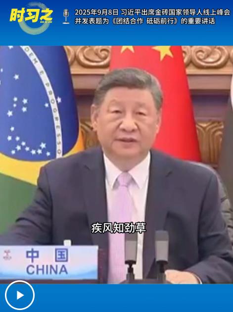 2025年9月8日晚,国家主席习近平出席金砖国家领导人线上峰会,并发表题为《团结合作 砥砺前行》的重要讲话。