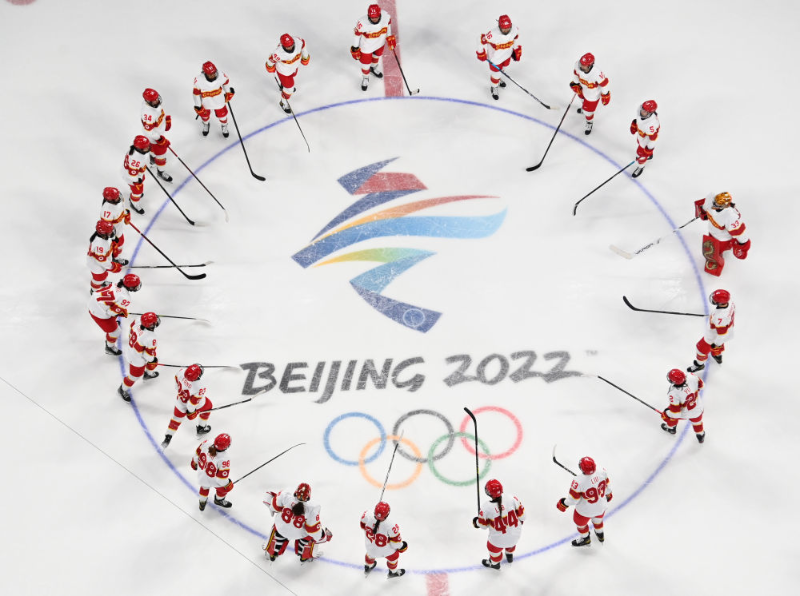 北京2022年冬奥会是迄今女性参赛比例最高、参与项目最多的一届冬奥会。图为中国国家女子冰球队在赛场。