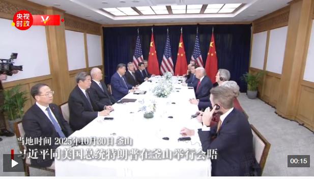 当地时间10月30日上午,国家主席习近平在釜山同美国总统特朗普举行会晤。