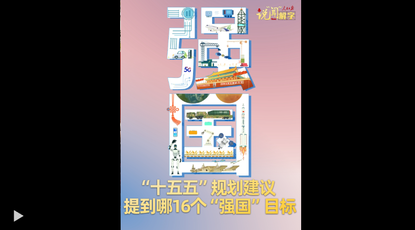 “十五五”规划建议中提到了16个“强国”目标。规划建议聚焦哪些实际问题?我们将在哪些地方发力?一支视频读懂。