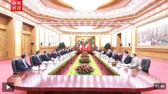 12月4日上午,国家主席习近平在北京人民大会堂同来华进行国事访问的法国总统马克龙举行会谈。