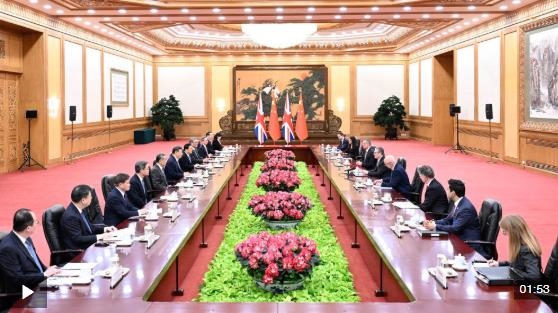 1月29日上午,国家主席习近平在北京人民大会堂会见来华进行正式访问的英国首相斯塔默。