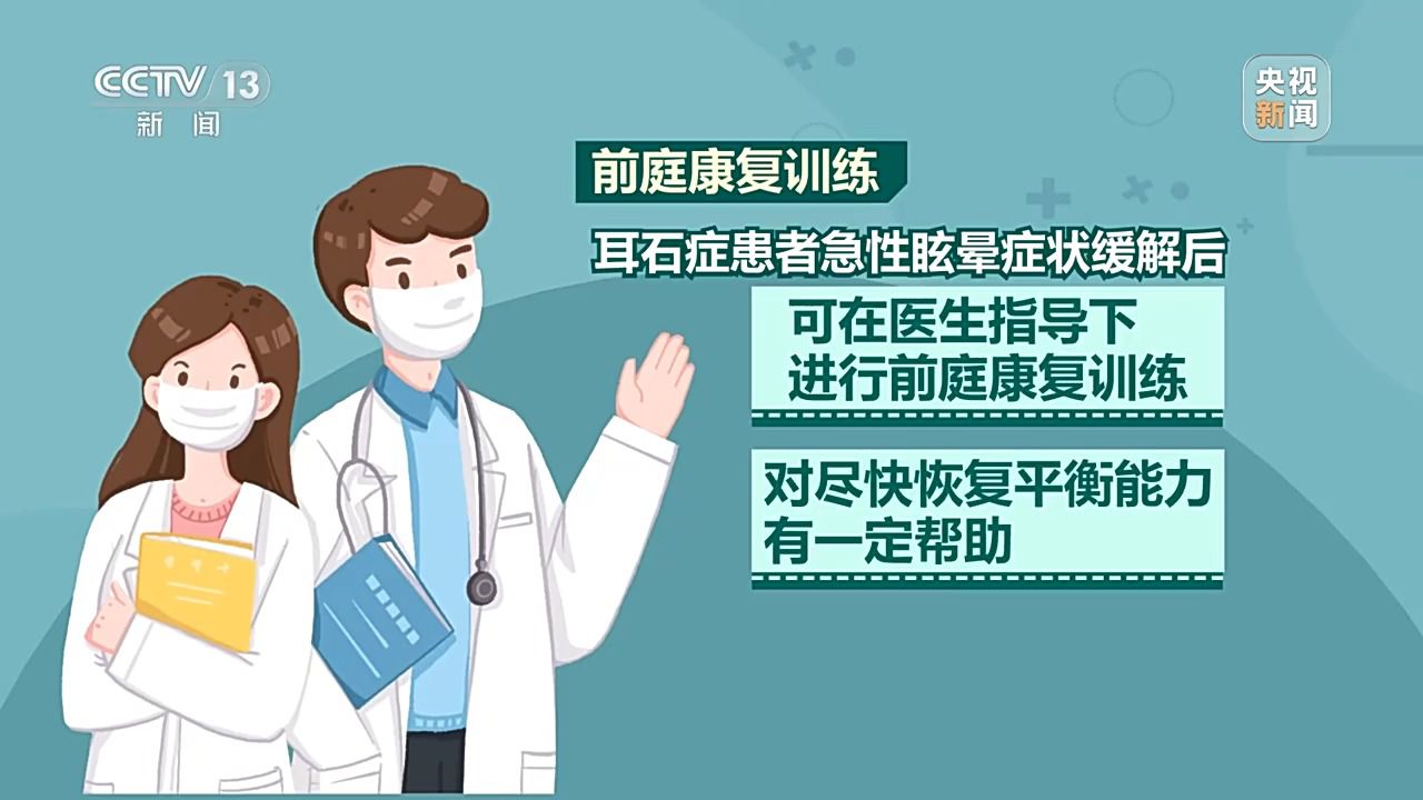 医务人员介绍,耳石症是一种良性疾病,一般可自愈,多数人在发病后一周到一个月内,眩晕感会减轻或消失。不过,耳石症发作后很痛苦,出现上述症状时,仍需尽快就诊,缓解症状,预防跌倒摔伤和发展成慢性耳石症,就诊首选眩晕科、耳鼻喉科或神经内科。