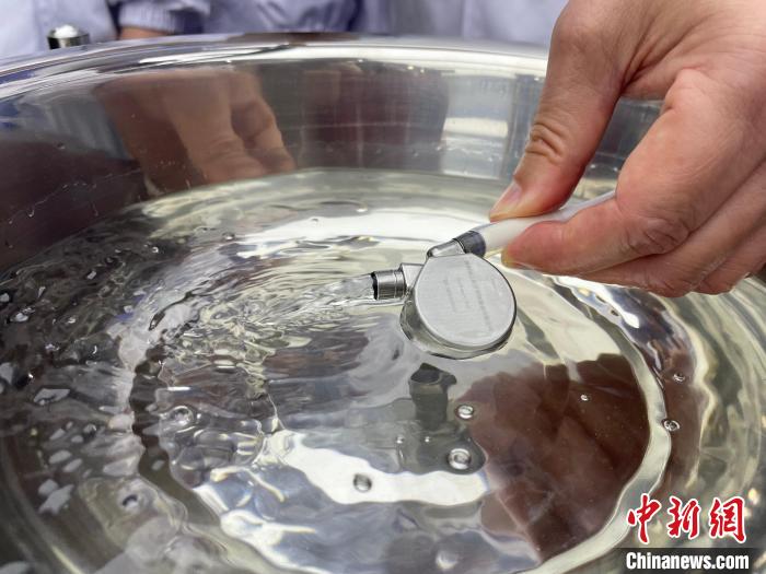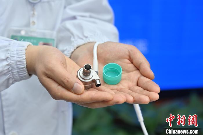 4月15日,武汉协和医院宣布与相关企业联合研制出用于儿童的人工心脏。图为研发人员展示人工心脏工作过程。中新社记者 马芙蓉 摄